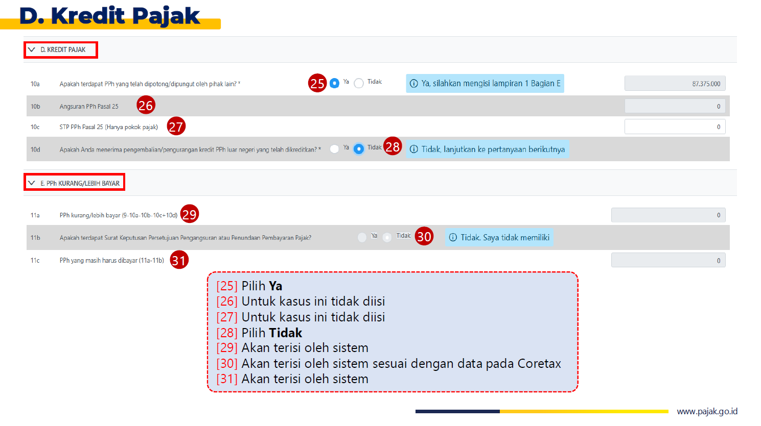 - Angsuran PPh Pasal 25 Tahun Pajak Berikutnya: Panduan pengisian terkait kewajiban angsuran PPh Pasal 25.