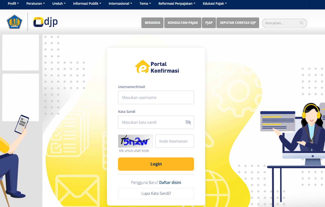 Laman web http://portalnpwp.pajak.go.id diperuntukkan bagi entitas/badan yang ingin memfasilitasi proses pemutakhiran data Nomor Pokok Wajib Pajak (NPWP) dan Nomor Induk Kependudukan (NIK) bagi karyawan atau rekan transaksi mereka.